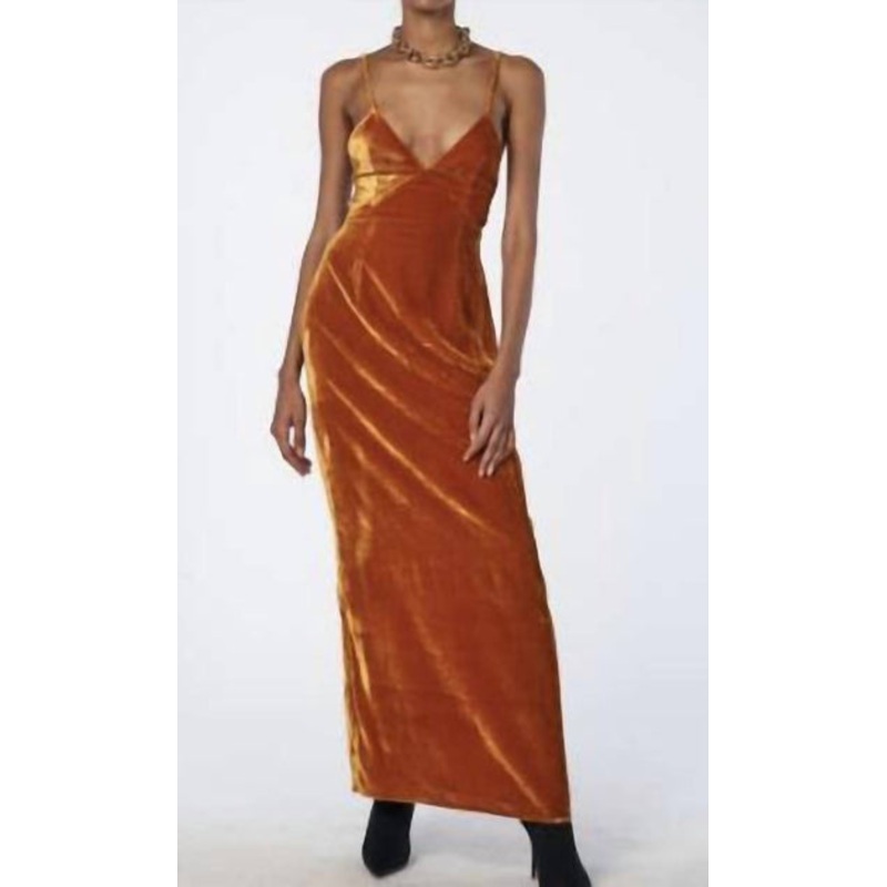 Who doesn't love a good maxi dress? This one you'll be reaching for season after season.Sheath. Sleeveless. V-neck. Side zipper closure. 53.5" from shoulder to hemline. 75% Viscose, 25% Nylon. Imported.
