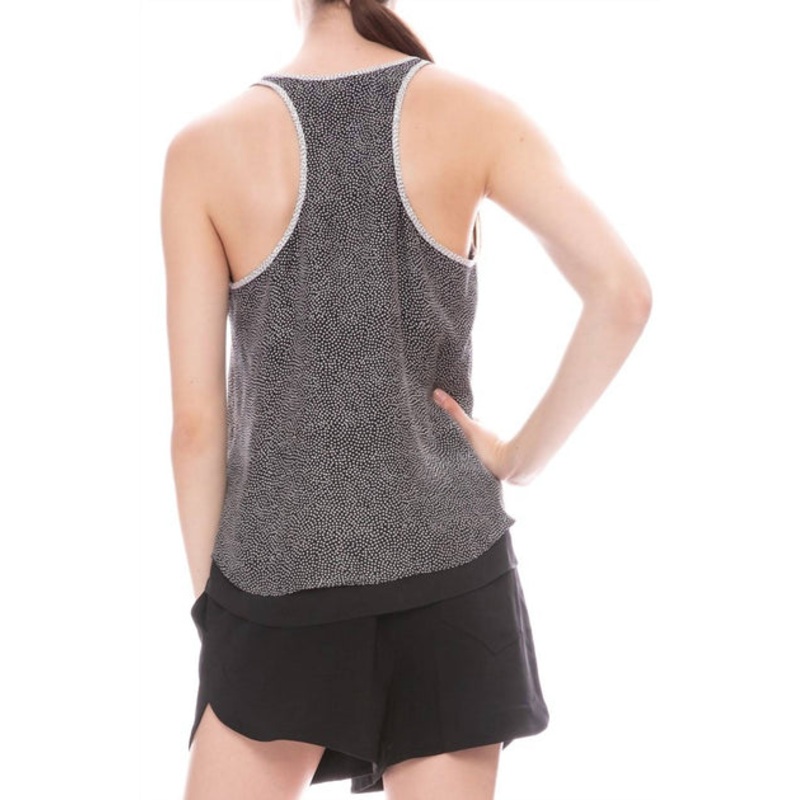 This classic tank top is perfect for layering and cute enough to wear on its own.DetailsTiny dot print silk top Scoop neck Racer backDouble layer.Lightweight layered tankFits true to size.Model is 5' 9" wearing size 2.