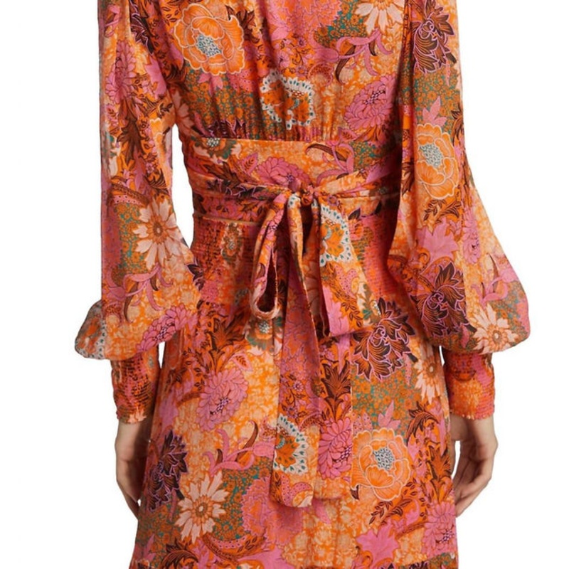 Cut from vibrant, floral-print silk, this cropped top features sheer poet sleeves and a self-tie gathered back.
