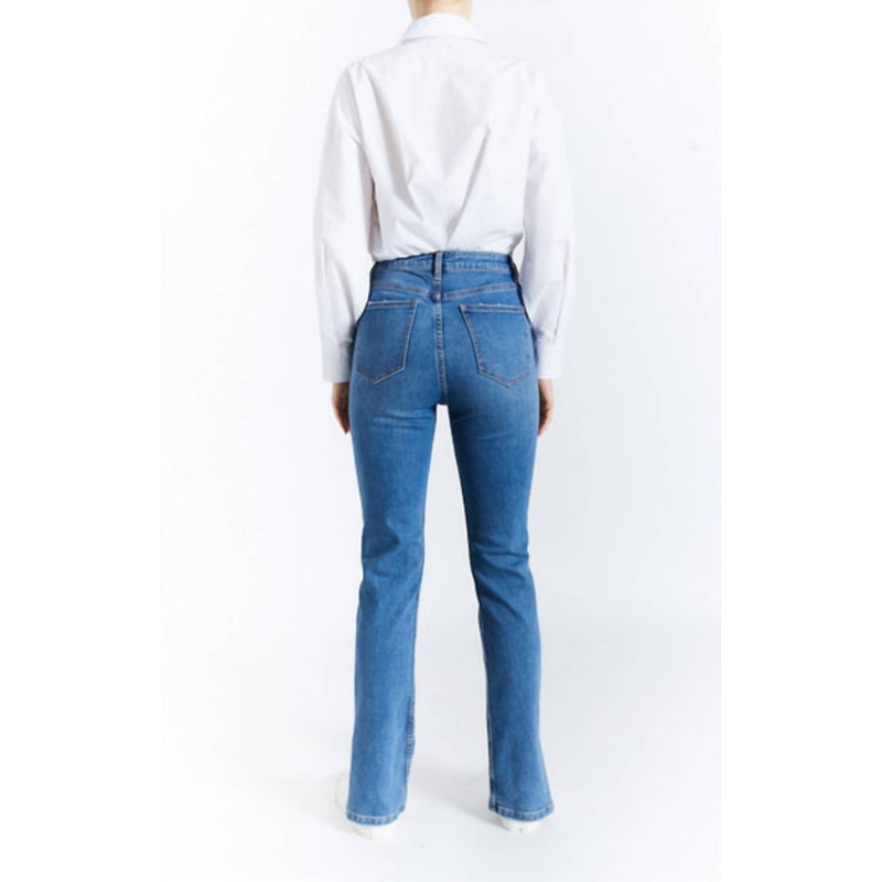 These must-have jeans are fit to perfection.Medium dark wash with a high height and side slits, as well as five pockets and a front button and zipper fastening. Machine wash cold.